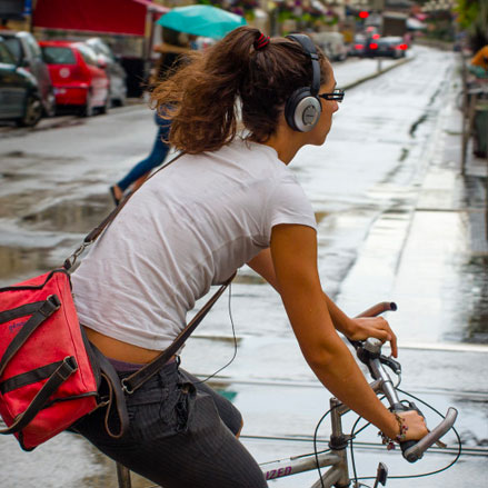 No escuches música mientras circulas porque te aislas del entorno.