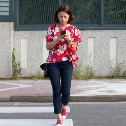 Evita los distractores como el teléfono y no uses auriculares al caminar.