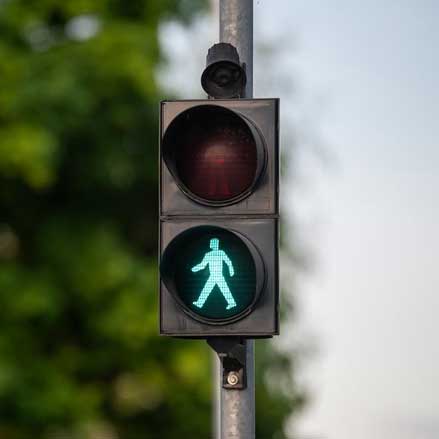Nunca cruces cuando el semáforo para los automovilistas esté en verde.